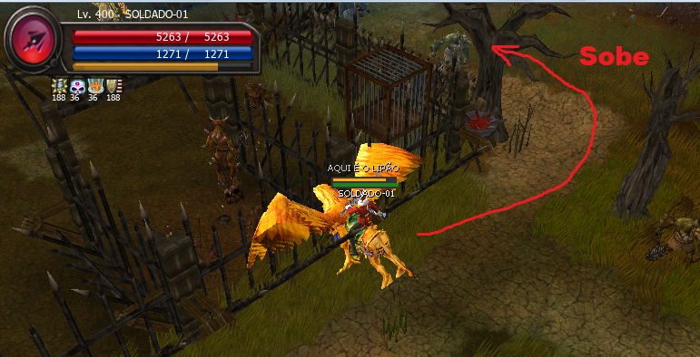 Entrando no primeiro portal de Azran, você vai ter que ir na costa da gaiola dos monstros.