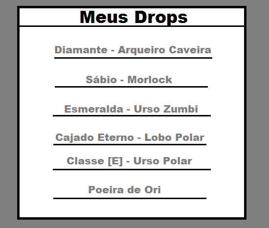 A lista pode ter mudanças. (Obs, estou construindo com os meus drops/conto amigo)
